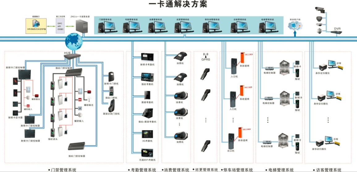 系统应用于企事业单位,主要加强公司内部的管理,员工考勤、餐饮消费、工资管理、身份验证、出入控制、医疗、保险、交通等。